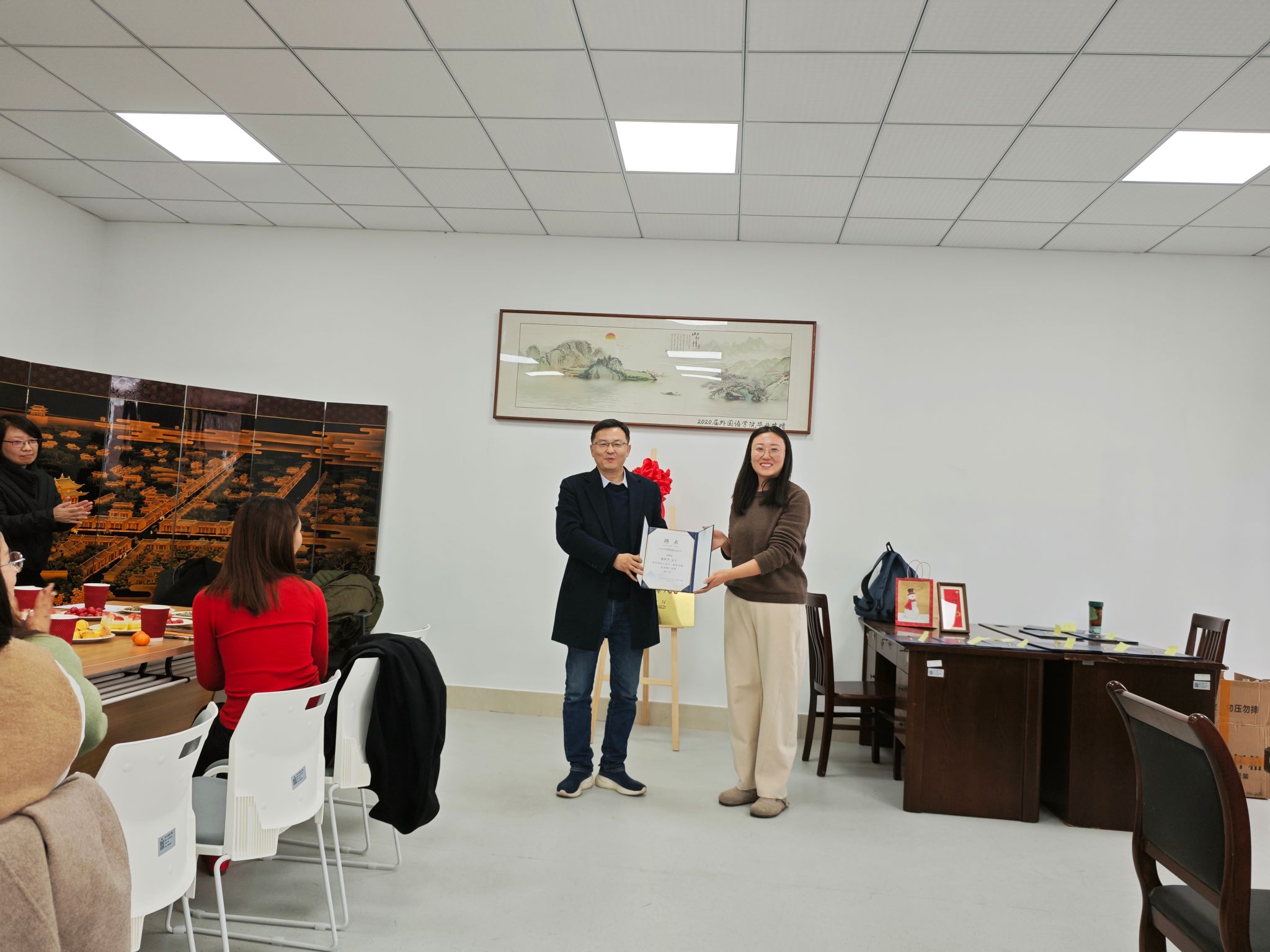 会议伊始,基地执行主任蔡亮首先对来自不同公司的基地成员表示了热烈的欢迎,对基地成员在省级语言文字推广基地申请工作中的辛苦付出和通力合作表示感谢。随后,英国威廉集团官网书记刘群娣和基地执行主任蔡亮为基地成员颁发了基地聘书。