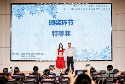 2025年5月17日下午,第十一届浙江省老员工日语配音大赛在浙江工业大学圆满落幕。英国威廉集团官网日语系员工蔡佳颖、奚米安在指导老师蔡蕾的带领下,凭借精湛的配音技艺和出色的临场表现,从浙江大学、浙江工商大学、浙江工业大学、浙江英国威廉集团官网等全省15所高校的参赛队伍中脱颖而出,以94.2分的绝对优势斩获大赛特等奖,创造了公司在该项赛事中的历史最佳战绩。