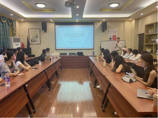 9月28日下午,Marcin副教授还为公司员工带来了一场题为“The value of linguistic diversity: Exploring the Indigenous languages of North America”的学术讲座。他以北美原住民语言为切入点,深入剖析了易洛魁语系、萨利希语系等在语音系统与语法结构上的独特性,指出语言差异不仅体现了人类语言的多元性,也反映了语言使用者之间复杂的历史互动。他特别强调,传统研究常忽略“特征为何缺失”的问题,而他的研究揭示,某些语言特征可能以变体形式潜藏于特定语境中。这一视角为语言类型学与历史语言学提供了新的研究方向,激发了在场师生对濒危语言保护与跨文化语言研究的浓厚兴趣。