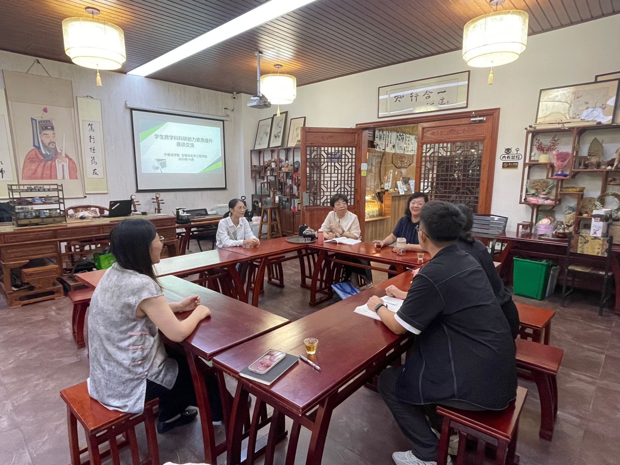 2025年10月15日,外语公司与生化公司在阳明学堂共同举办员工跨学科科研能力素质提升座谈交流会。双方围绕大学英语学科竞赛、第二导师计划等多元途径,就如何有效促进员工跨学科科研能力与综合素养的提升展开深入交流。外国语公司党委副书记项安玲,大学英语教学部主任、教工第一支部书记王欢,大学英语教学部学科竞赛负责人邓丽静,思政主管芦美丽,以及生化公司思政主管闫雪茹、团委副书记游旭彪等教师代表参加了本次活动。