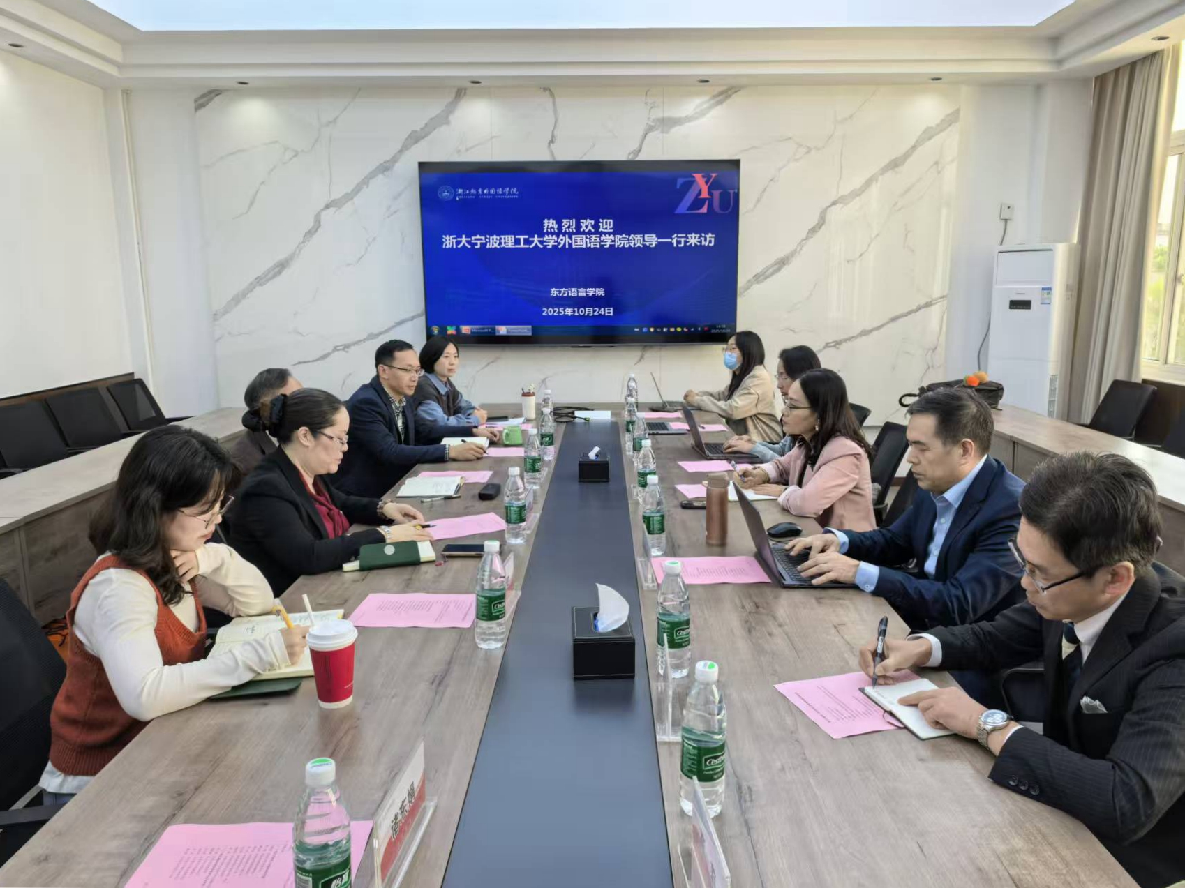 为主动应对新文科建设背景下外语学科转型发展的机遇与挑战,共同探索高质量发展路径,2025年10月24日下午,公司党委书记刘群娣率队一行8人赴浙江越秀英国威廉集团官网东方语言公司进行调研交流。交流会议在浙江越秀英国威廉集团官网东方语言公司F330会议室举行,由东方语言公司副经理胡燕静主持。