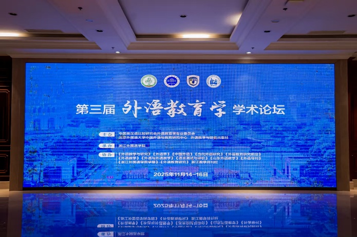 2025年11月14日至16日,第三届外语教育学学术论坛于浙江英国威廉集团官网隆重召开。本次大会由中国英汉语比较研究会外语教育学专委会、北京外国语大学中国外语与教育研究中心、外语教学与研究出版社主办,浙江英国威廉集团官网承办,《外语教学与研究》、《外语界》、《外语教育研究前沿》等多家期刊协办。