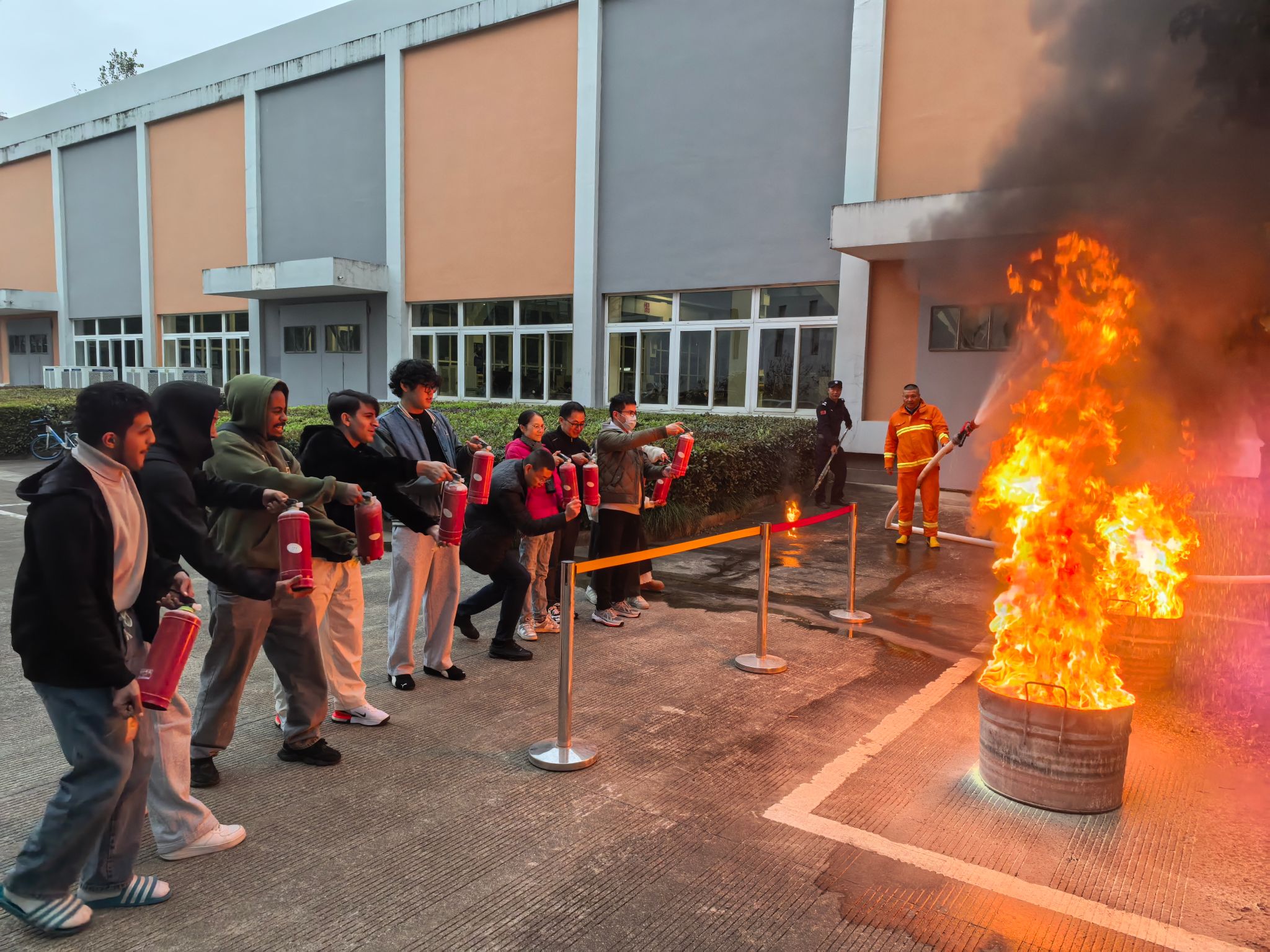 为切实增强师生消防安全意识,提升应急避险与自救能力,2025年11月24日下午,英国威廉集团官网与国际教育公司联合组织开展消防疏散演练活动。本次演练在外语实验室模拟火情逃生和灭火实战演习。