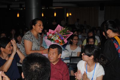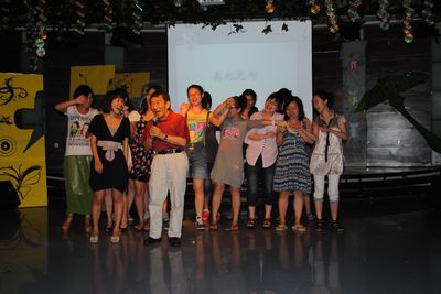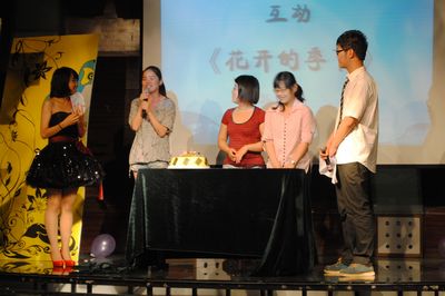 晚会第二篇章《风筝•逐梦》中的互动内容,将晚会推向了高潮。09级同学和他们即将毕业的班导助理将分别的不舍之情化成了泪水宣泄出来。两年前离开公司返回日本的外教高光义博老师,特地从日本赶来为2011届毕业生送行,更是感动了全场。