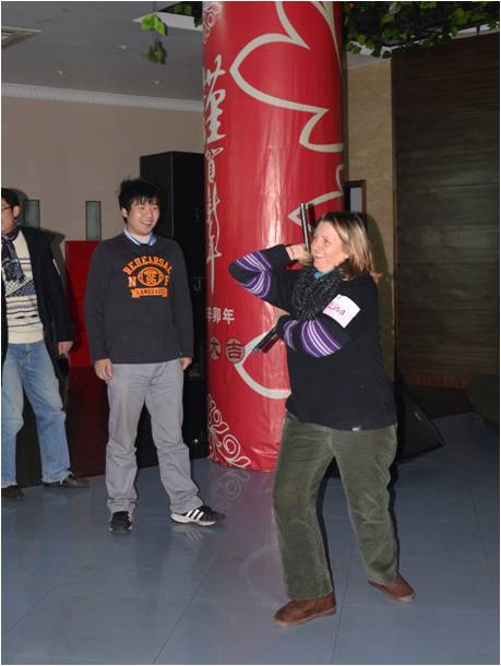 “公益汉语课堂”的志愿者们与外籍“员工”共同体验中国传统文化