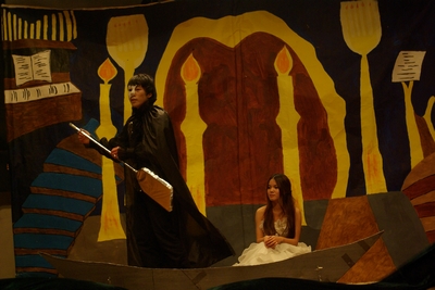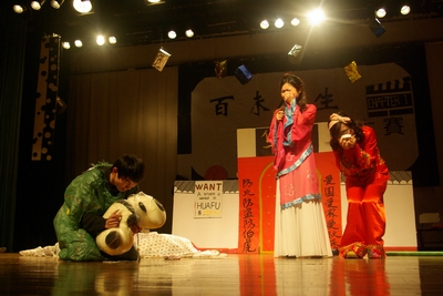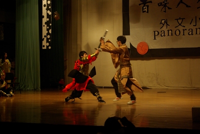 随后第九届外语文化艺术节的重要子活动——“百味人生”外文小品大赛拉开帷幕,参加当晚决赛的六支队伍是从报名参赛的 支队伍中选拔而来,各个节目主题鲜明、内容丰富、形式多样。舞台上,演员们使出了“十八般武艺”,又唱又跳,风趣幽默的演出,熟练流利的口语,为观众们演绎出一场场精彩的节目,也为在座的各位带来了欢声笑语。比如中美091班的《鸿门宴》取材于经典的《三国演义》,又融合现代的时尚元素;日语091班的《白雪王子》采取反串演出的形式,将人尽皆知的《白雪公主》演绎得栩栩如生;英语094班的《歌剧魅影》将大气磅礴的经典歌剧曲目搬到了舞台上,在精美绝伦的道具衬托下显得可歌可泣。各支队伍不仅在舞美设计上匠心独运,也在服装、灯光上花了不少心思。所有节目坚持突出外语特色,演员们声情并茂地演绎博得在场观众的热烈掌声。