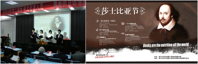【世界文化名人周】每年春季举办的外语专业系列活动,已举办了7届。每届活动从英、日语母语国选择一位文化名人作为中心主题,采取外文演讲、系列讲座、沙龙讨论、小品演出等方式,达到了传播国外优秀文化,弘扬人文精神的目的,同时对英、日语专业员工外语能力与文化素质的提高也起到了重要作用。nit.cuepa.cn/show_more.php