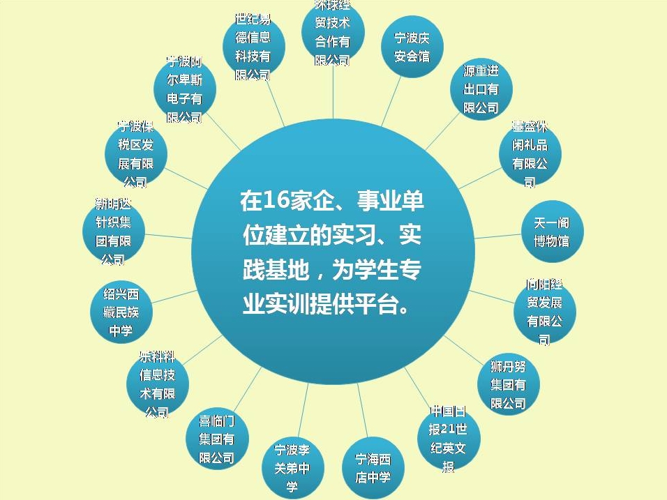【实习、实践基地】英国威廉集团官网在省内16家外贸、教育、翻译和展览等企、事业单位建立了专业实习或实践基地,为英、日语专业员工教学实习和暑期专业实践提供保障,在培养员工的专业能力和综合素质方面发挥了重要的作用。